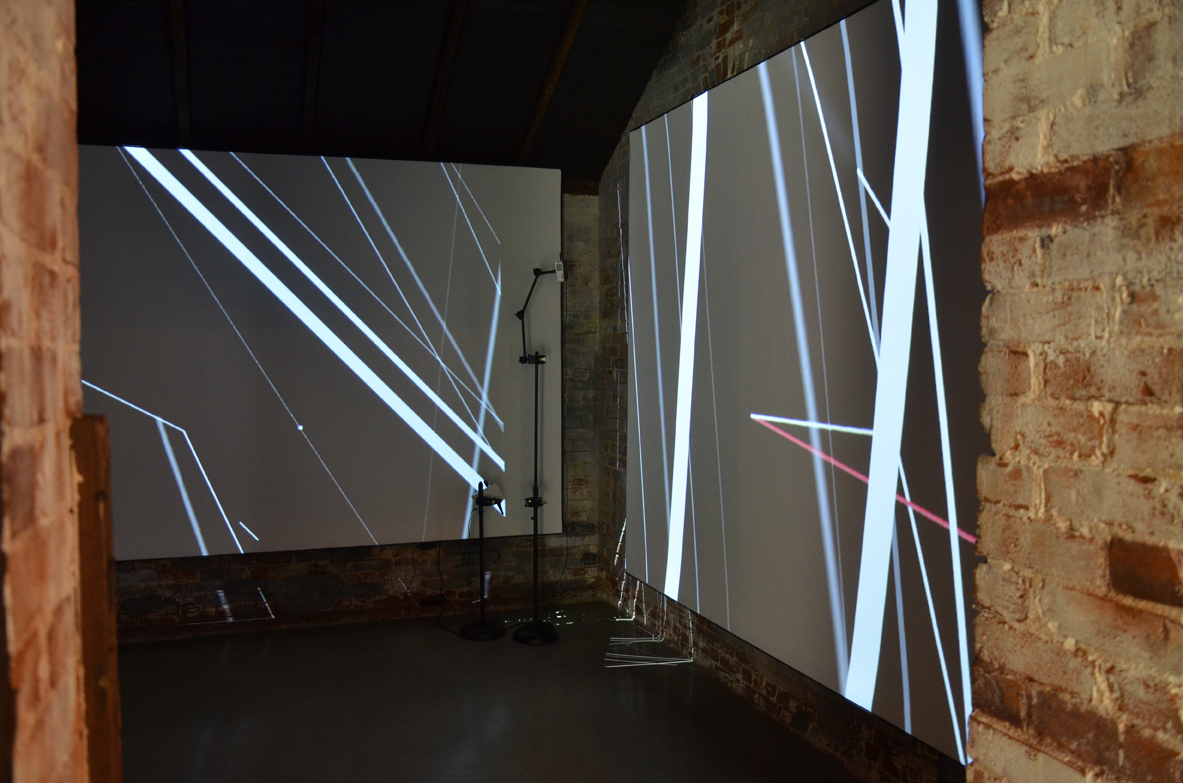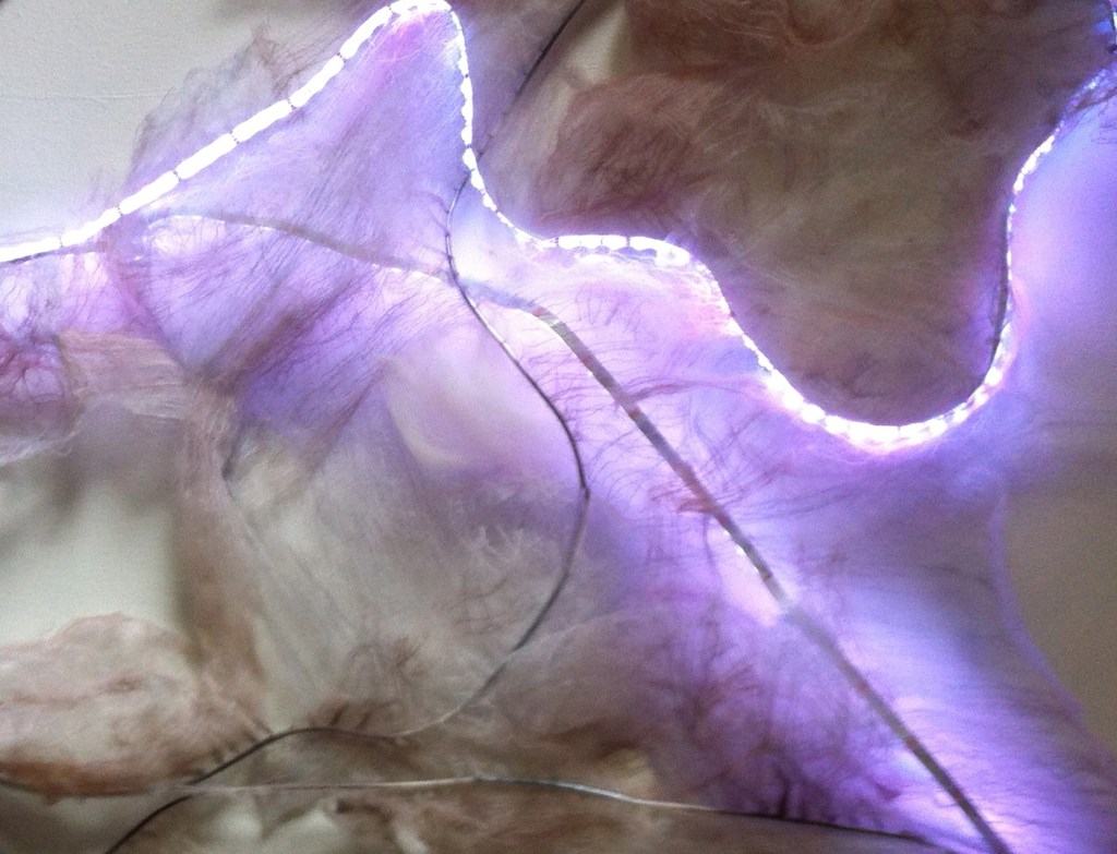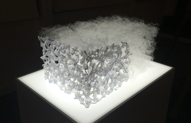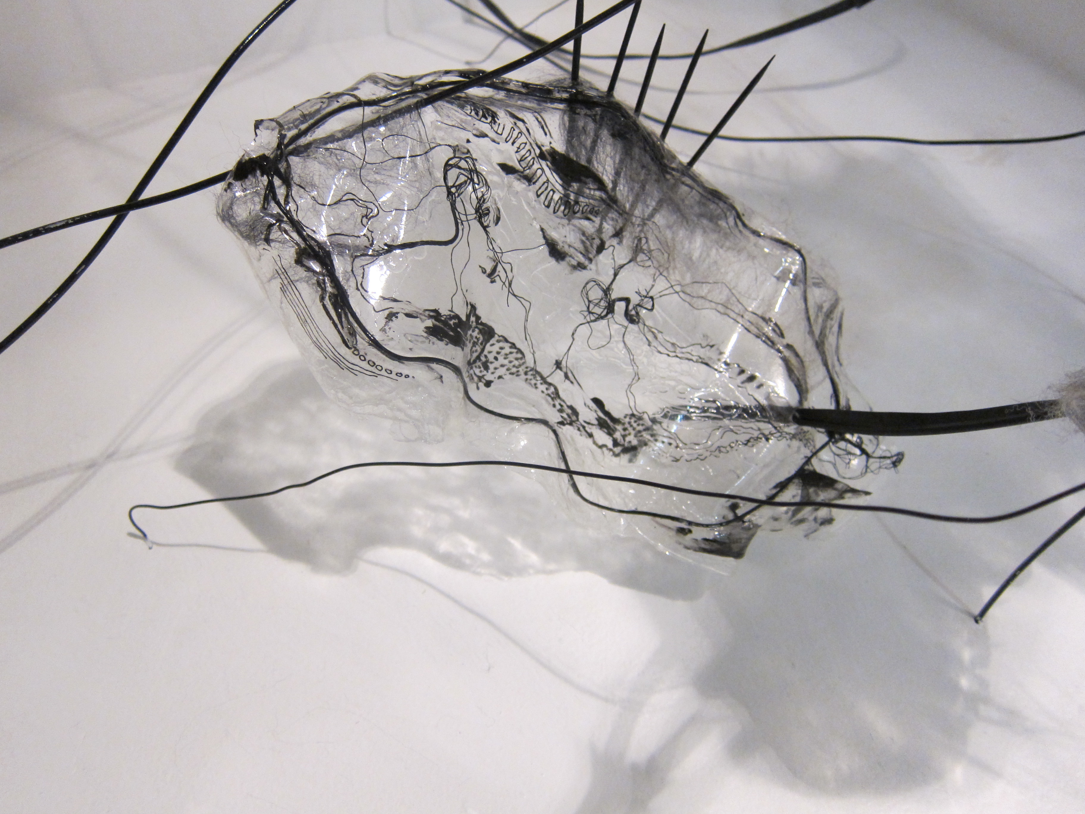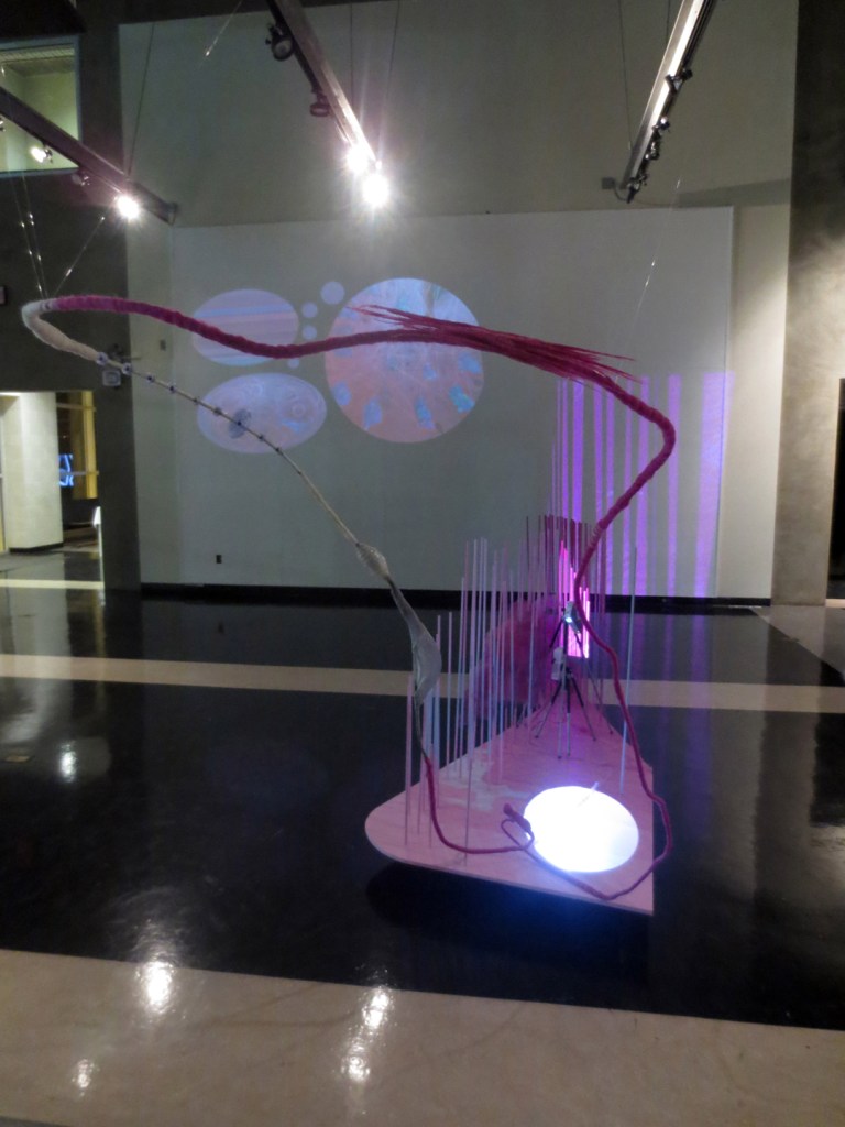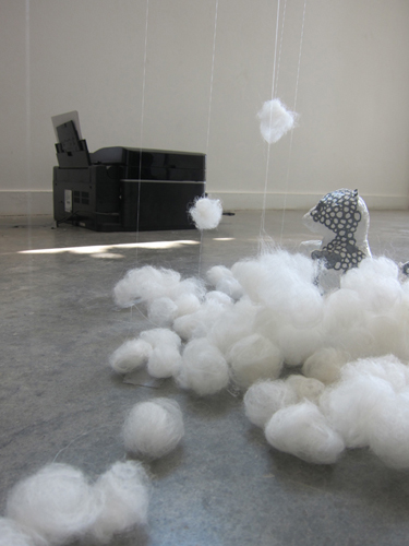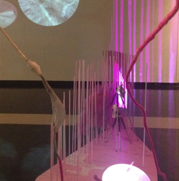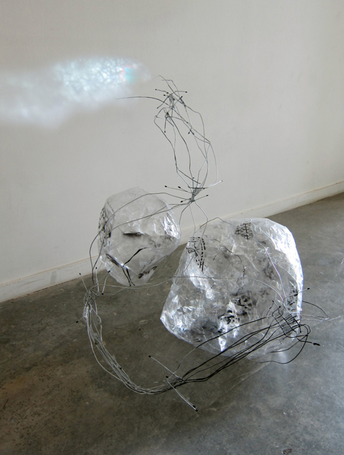 Can Art Stress? This acoustic, interactive installation is based on a defense mechanism: the reduction of noise in the face of danger. When exposed to the examining eye of the viewer who invades its personal space, the acoustic installation reacts as a frightened organism: it becomes quiet. Once the viewer returns back to a safe distance the humming of the structure is reactivated.