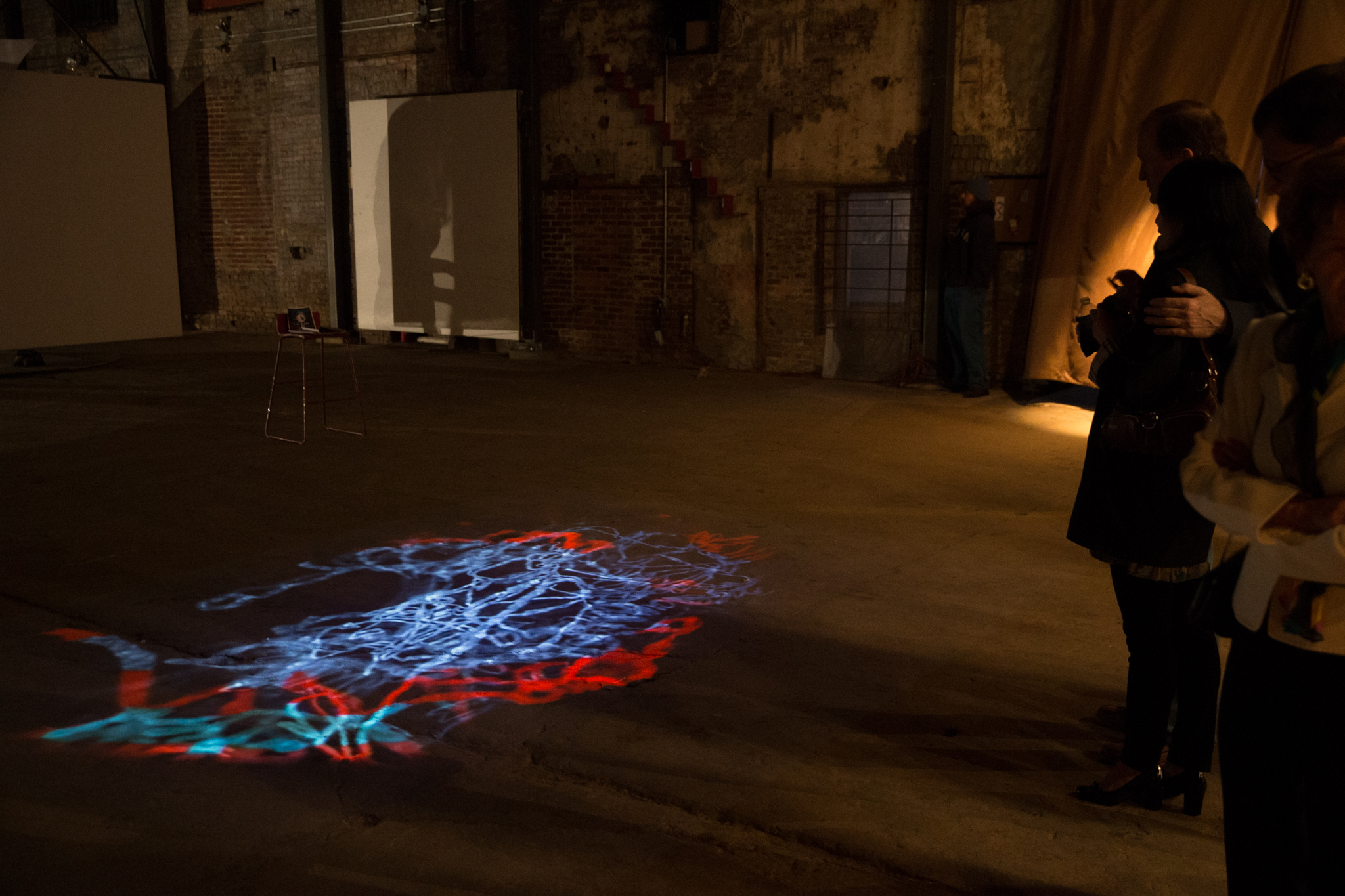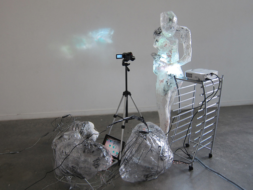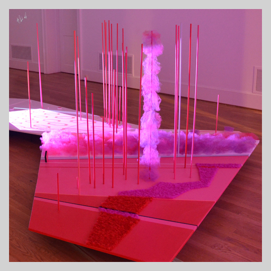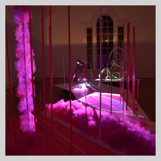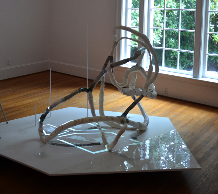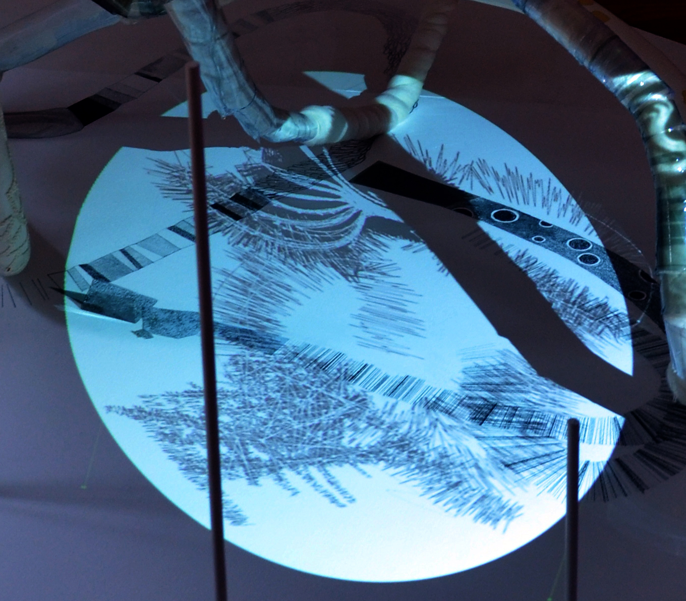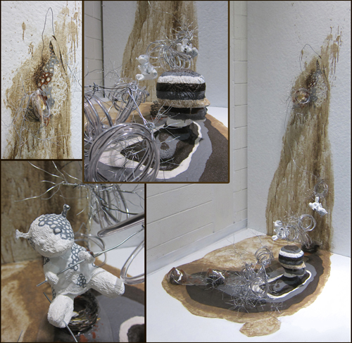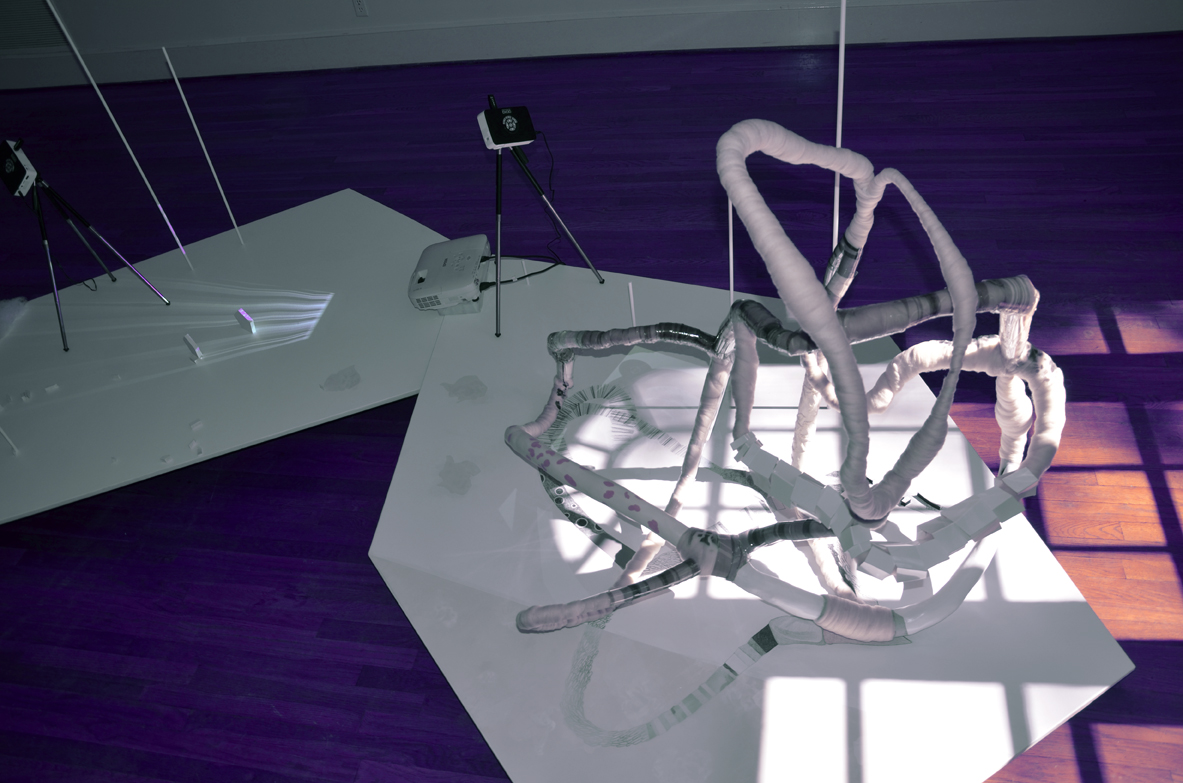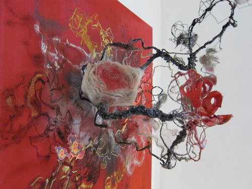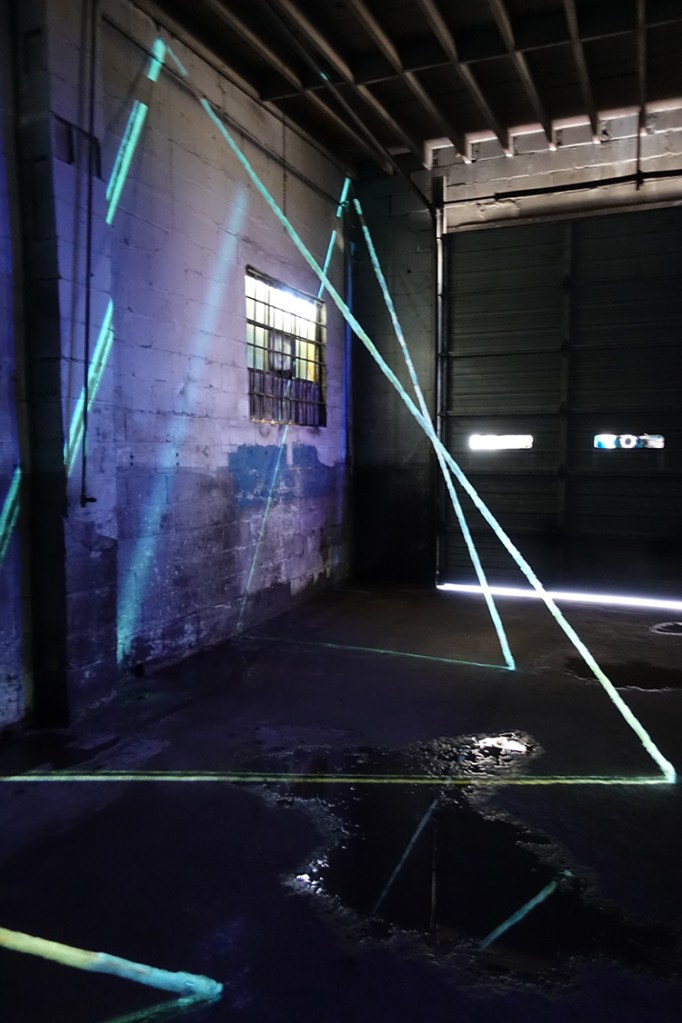 Can Art Stress? This acoustic, interactive installation is based on a defense mechanism: the reduction of noise in the face of danger. When exposed to the examining eye of the viewer who invades its personal space, the acoustic installation reacts as a frightened organism: it becomes quiet. Once the viewer returns back to a safe distance the humming of the structure is reactivated.