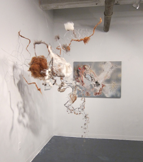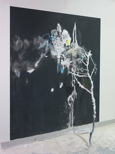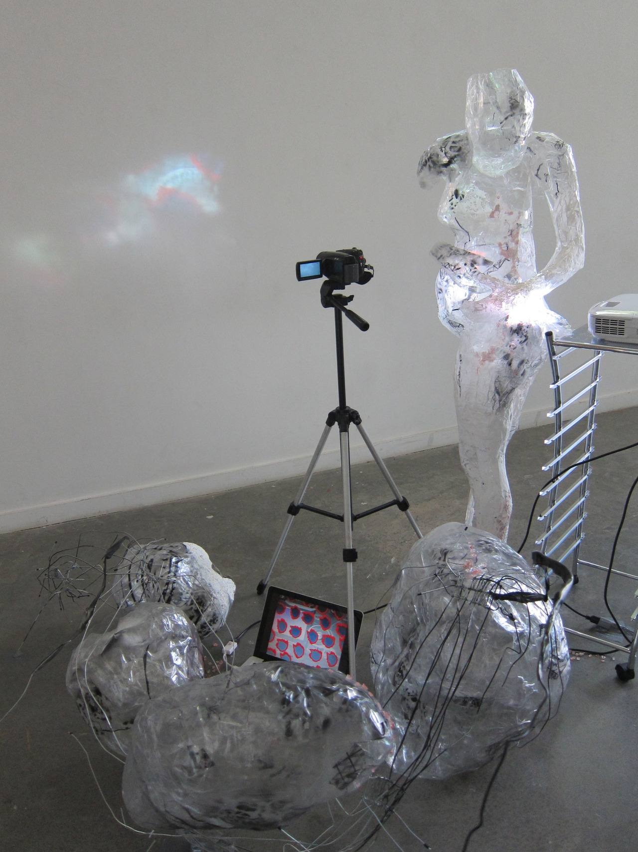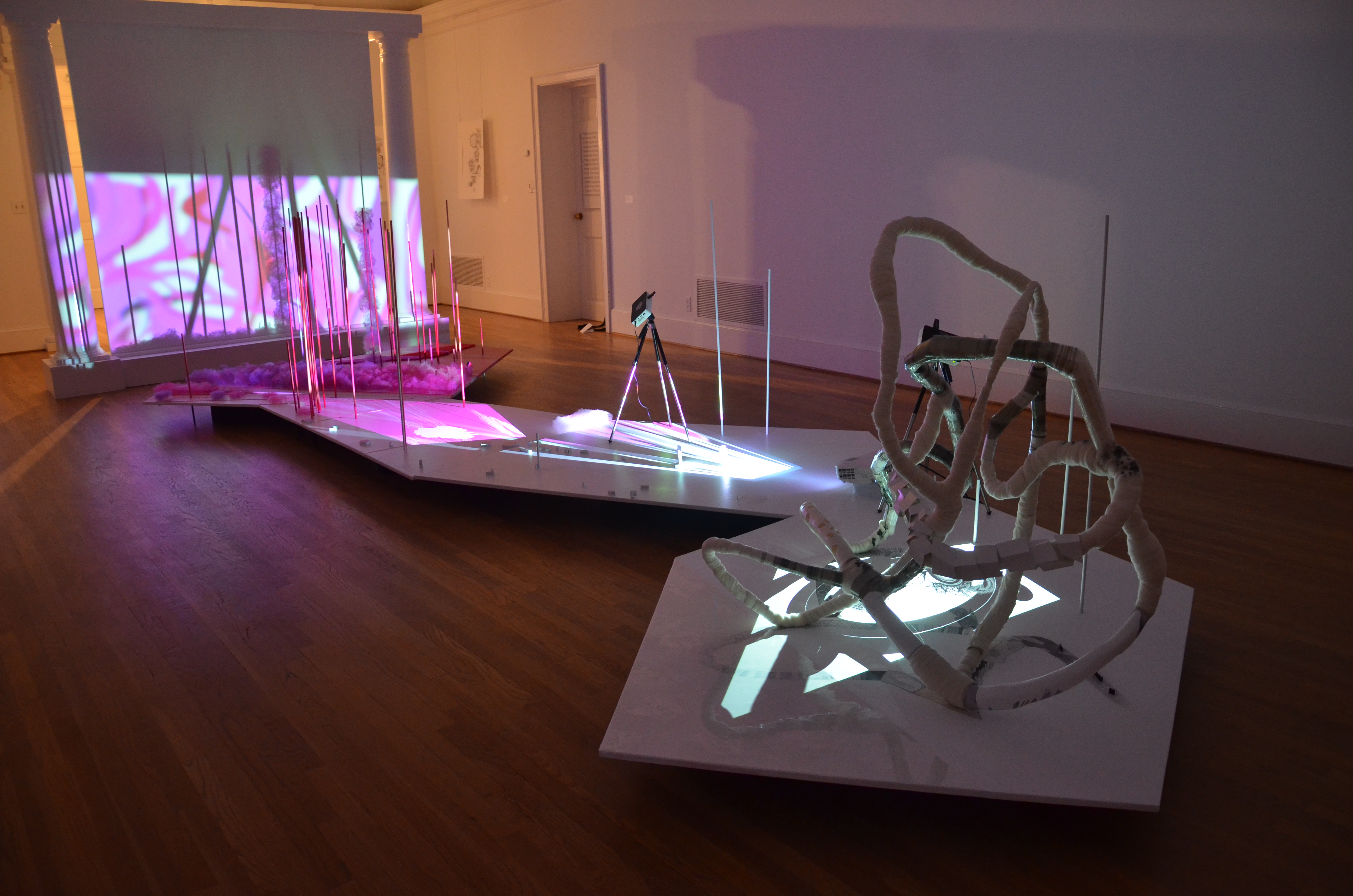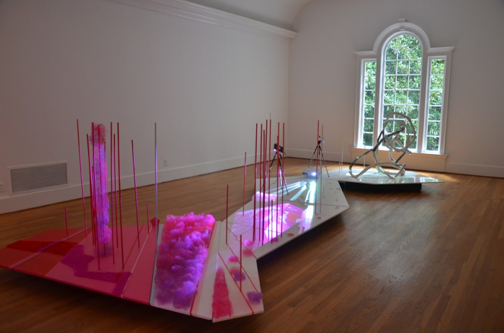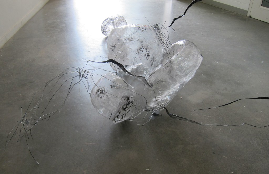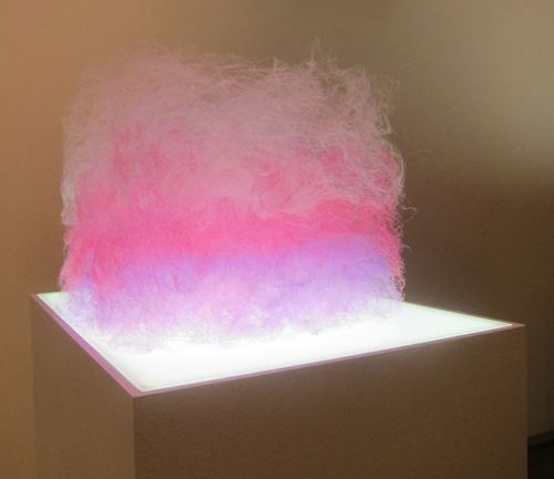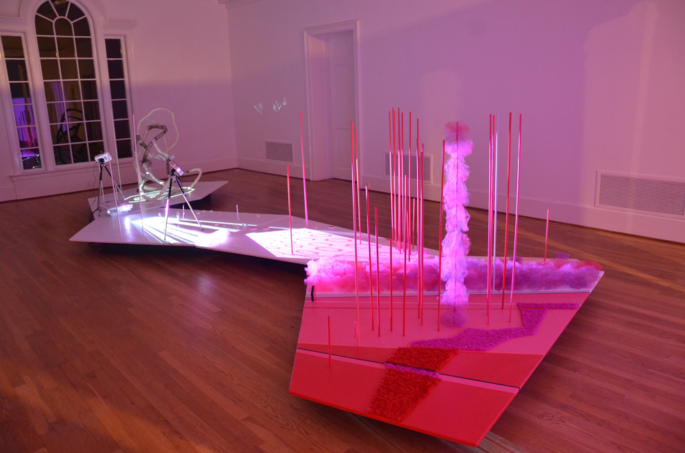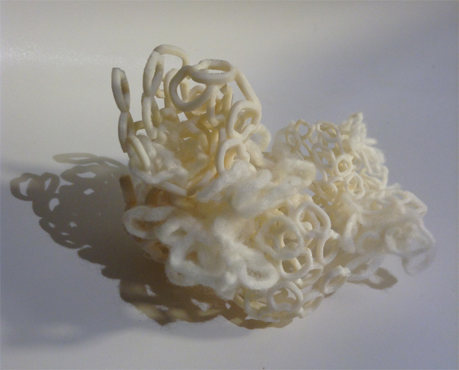 Can Art Stress? This acoustic, interactive installation is based on a defense mechanism: the reduction of noise in the face of danger. When exposed to the examining eye of the viewer who invades its personal space, the acoustic installation reacts as a frightened organism: it becomes quiet. Once the viewer returns back to a safe distance the humming of the structure is reactivated.