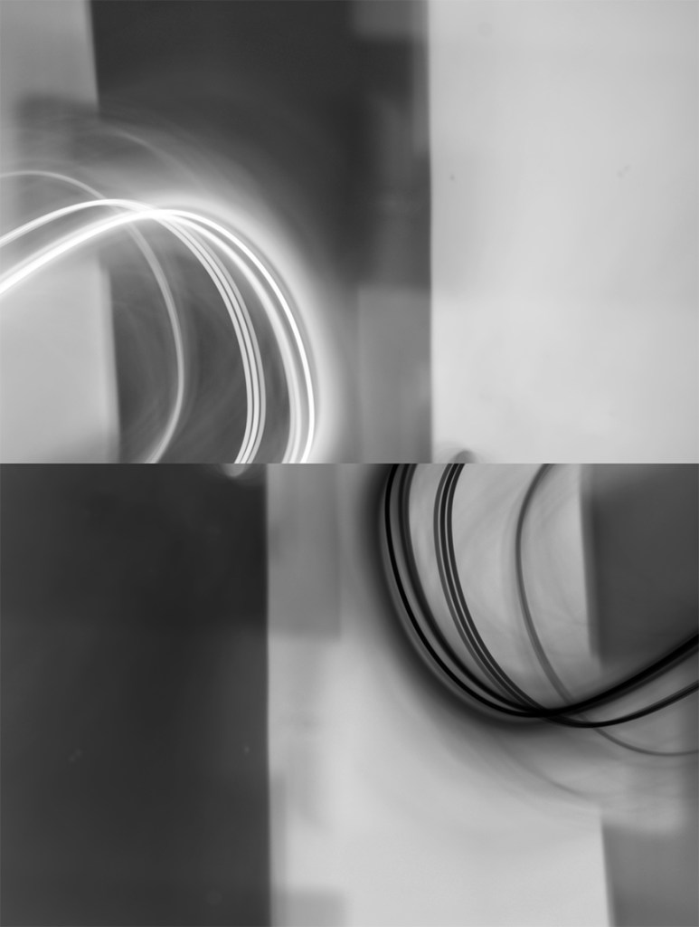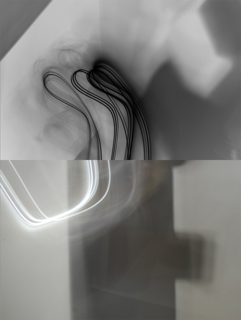 In Ginn’s photographic practice, the human body and digital technology intertwine to generate new dimensions of perception. Her gestural, motion-driven images of luminous, biologically inspired sculptures transform light into data, rendering rhythms and patterns that slip beyond the threshold of the human eye. The camera, wielded as a brush, extends the lineage of gestural painting into the digital, translating fleeting rhythms and invisible forces into a visual language of resonance. What emerges is not merely an image, but an encounter with the ephemeral, an aesthetic translation of the unseen. Ginn invites viewers into environments where nature and technology converge, revealing immaterial forces that pulse beneath the visible and shape the contours of our shared reality.