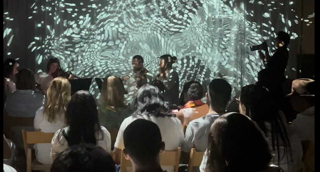 Physical and virtual immersive installation Science of Happiness is tapping into the potential of this research by integrating healing frequencies of light, sound, and rhythm, into a contemporary artistic expression.